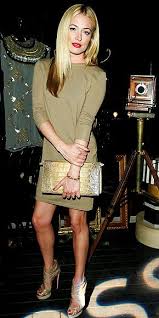 Cat Deeley works the minidress and heels look in Hoss Intropia dress and Christian Louboutin heels with Hoss Intropia cluth.